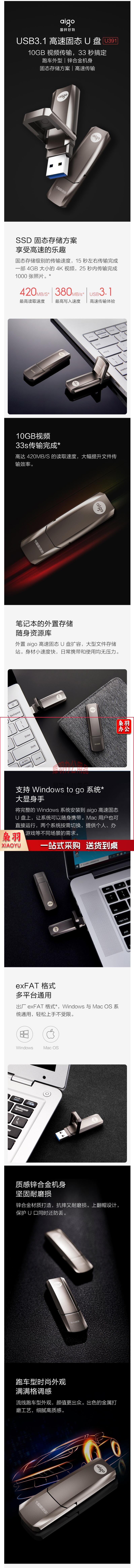 爱国者 U391 256G USB3.1 超极速固态U盘 锖色 读速420MB/s 写380MB/s (单位:个)