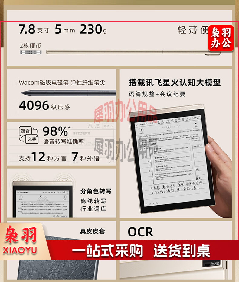 科大讯飞 智能办公本Air Pro 7.8英寸电子书阅读器 墨水屏电纸书 电子笔记本 语音转文字 星光金+深纹蓝保护套 AIRPRO