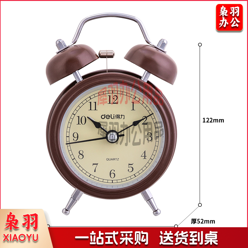 得力(deli)迷你复古机械闹钟 低噪音自带夜光 撞针响铃 家庭卧室床头闹钟 学生启蒙闹钟 棕色9024