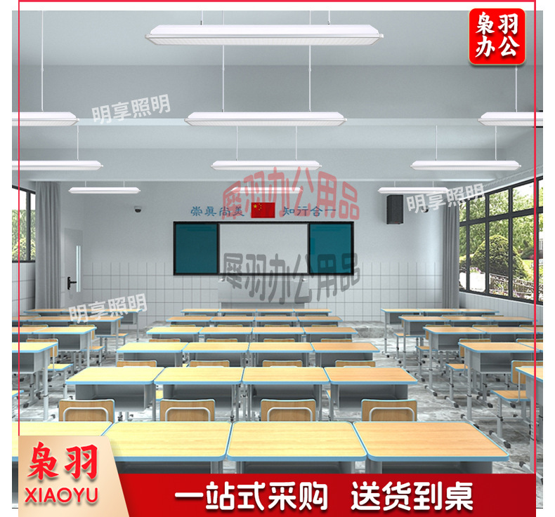 国标教室灯护眼防眩黑板灯全光谱led长条灯学校教室专用照明吊灯明享照明 36-40W铝框款【莱福德驱动】教室护眼灯【伸缩吊杆】