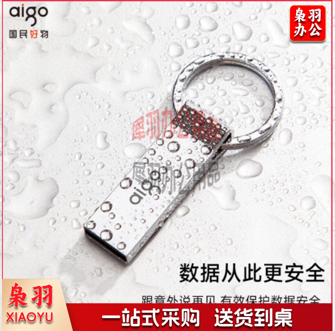 爱国者(aigo) 32GB USB2.0 U盘 U210 金属U盘 车载U盘 银色 一体封装 便携挂环