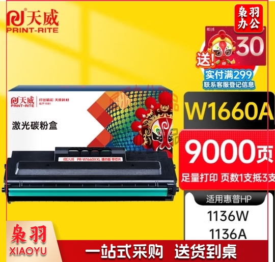 天威hp1136w硒鼓166a适用惠普w1660a 1188w硒鼓1188a 1188nw hp1008a硒鼓1008w打印机墨盒超大容量带芯片