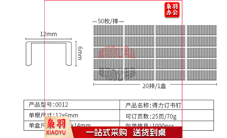 得力(deli)0012订书钉12# 24/6 1000枚/盒
