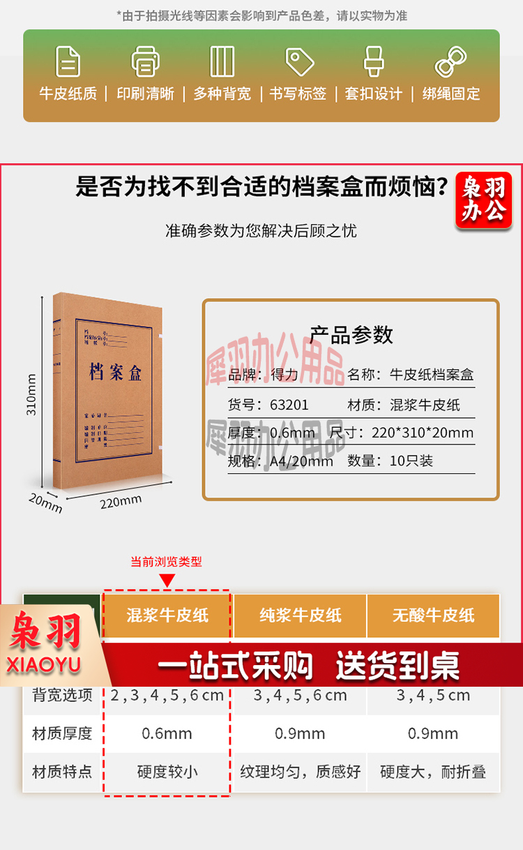 得力(deli)63201 10只20mmA四牛皮纸档案盒 twkj-250529090920