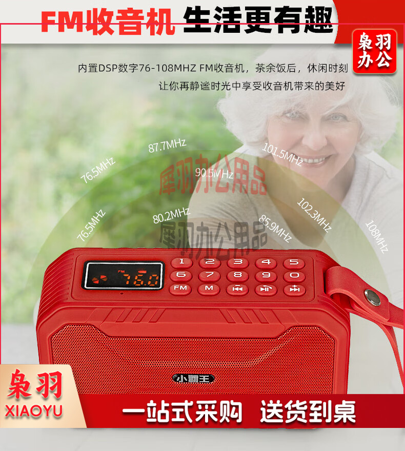 小霸王 D100蓝牙音箱迷你低音炮带收音机户外便携式插卡U盘广场舞小音响 红色