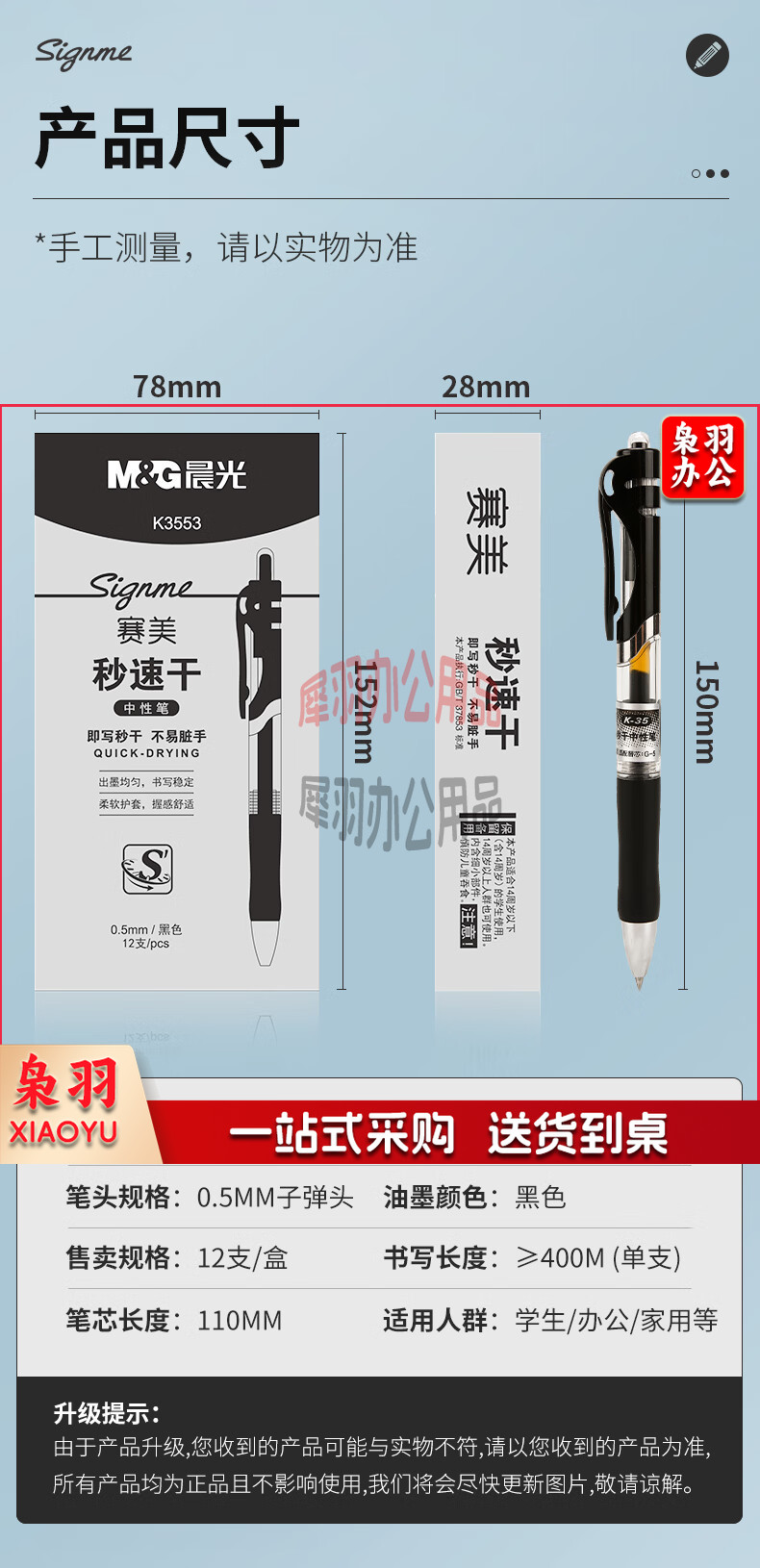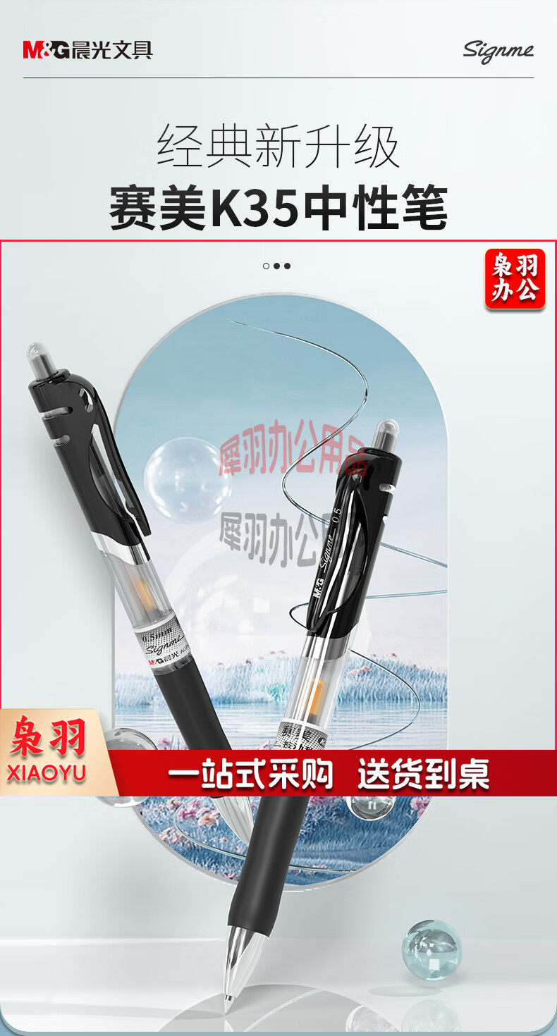 晨光(M&G)文具赛美K35/0.5mm黑(红)色中性笔 按动笔 经典子弹头签字笔 办公用水笔