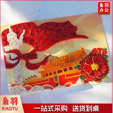 衍纸DIY材料包爱国盛世中国衍纸画成品定制套装工具白色相框
