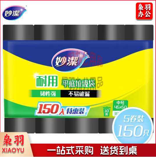妙洁 耐用平底垃圾袋 中号*150只装 黑色