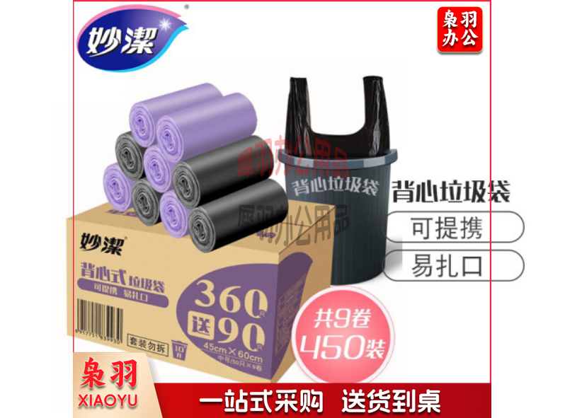 妙洁 背心垃圾袋加厚中号9卷装 点断式厨余办公室干湿分类 共450只