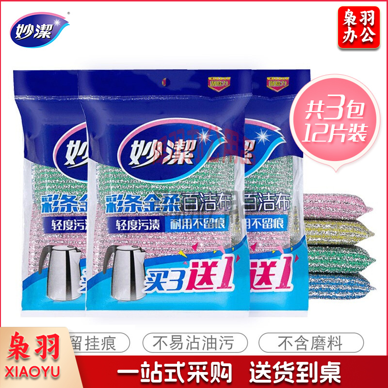 妙洁100019306848彩条金柔百洁布清洁抹布 洗碗去油污 厨房神器 4片装*3袋