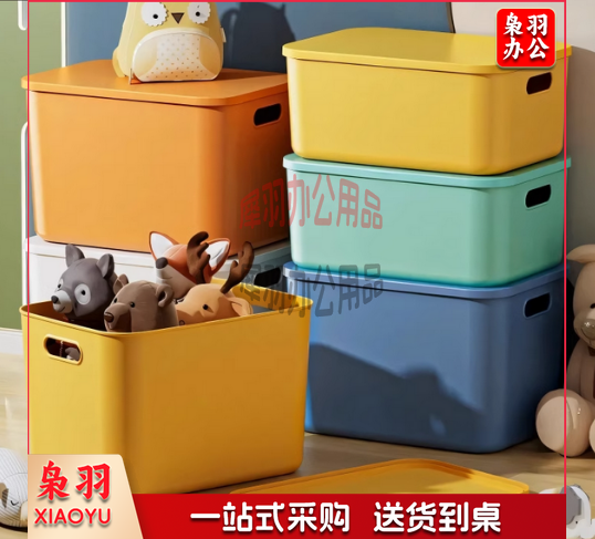4个装 收纳箱家用客厅杂物玩具零食厨房桌面整理塑料带盖储物箱子芒果黄大号(36.5*26*16.5cm)