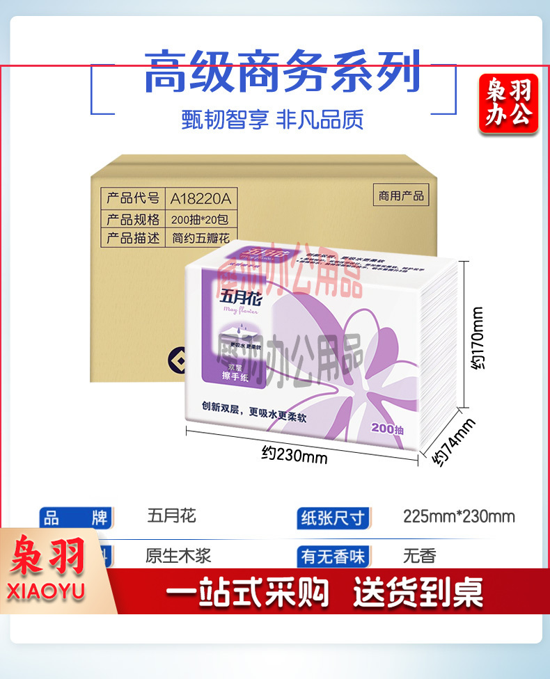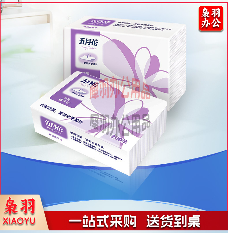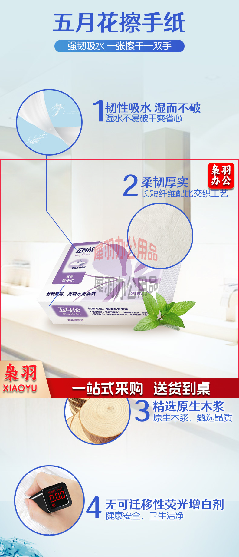五月花(May Flower)擦手纸 商务用纸酒店餐厅卫生间抽纸2层200抽*20包(225mm*230mm)整箱销售