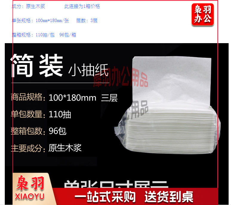 小方巾纸抽纸 3层110抽整箱96包 抽取式面巾纸 原木浆餐巾纸