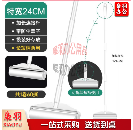 加大号24cm粘毛器6卷纸360撕加长杆特宽粘尘纸除毛器除尘滚筒