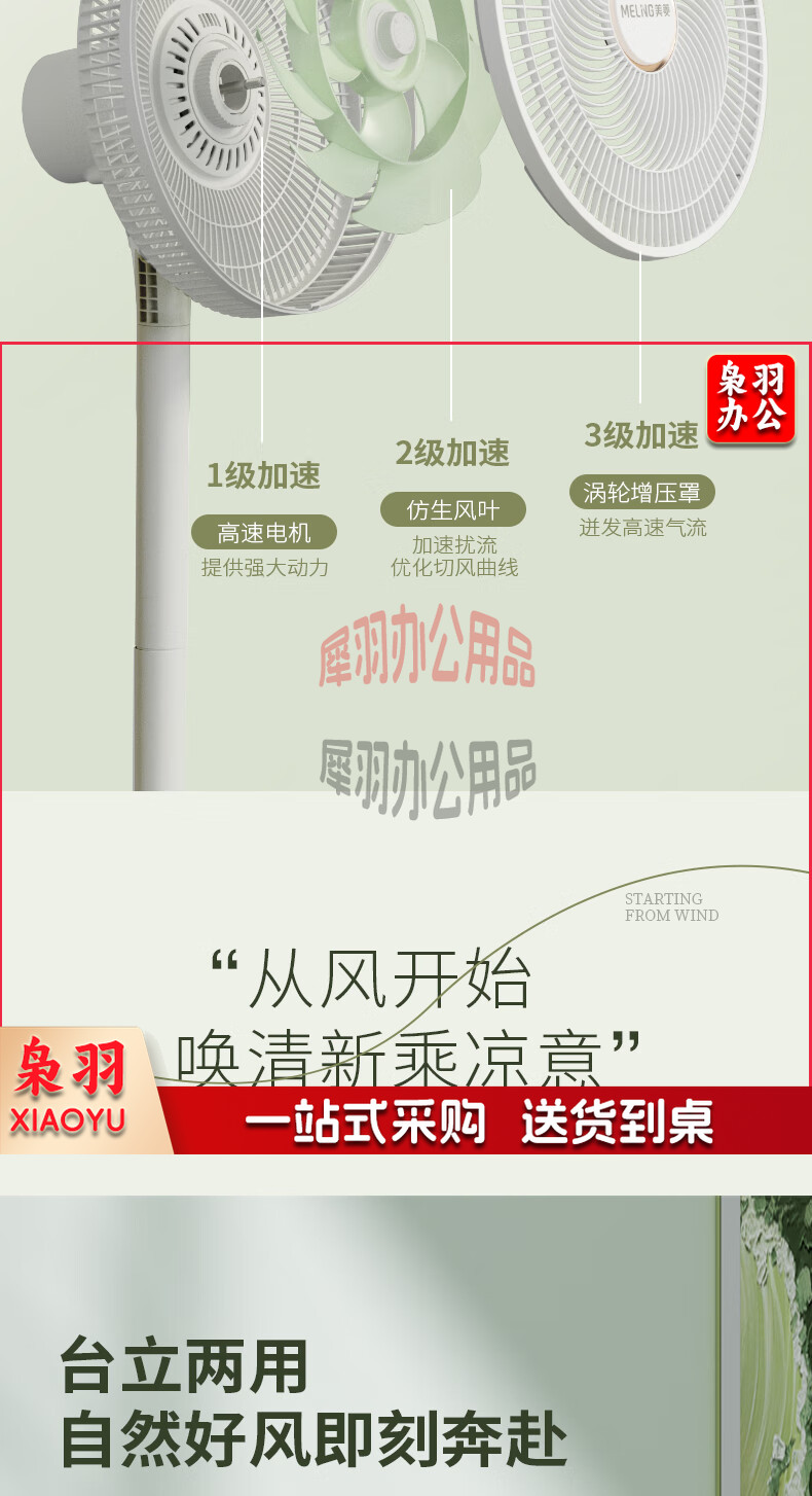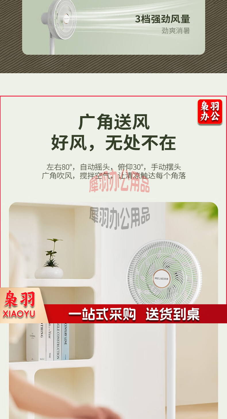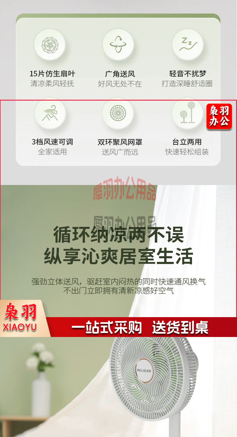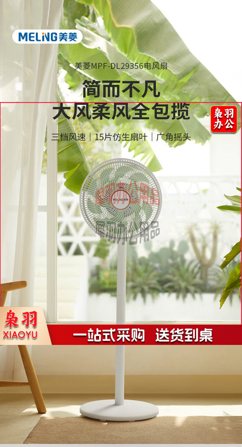 美菱(MeiLing)MPF-DL29356电风扇 三档风速左右80°摇头15片仿生扇叶