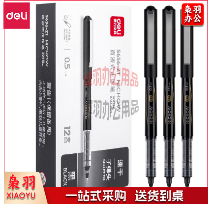 得力速干型直液式S656-Z1子弹头中性笔碳素考试签字笔最新耐用 得力S656-Z1【黑色】(12支起售)