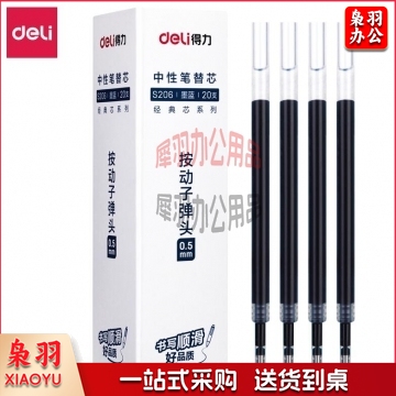 得力 S206 按动子弹头中性笔替芯 0.5mm 黑/红 20支/盒 BG.974