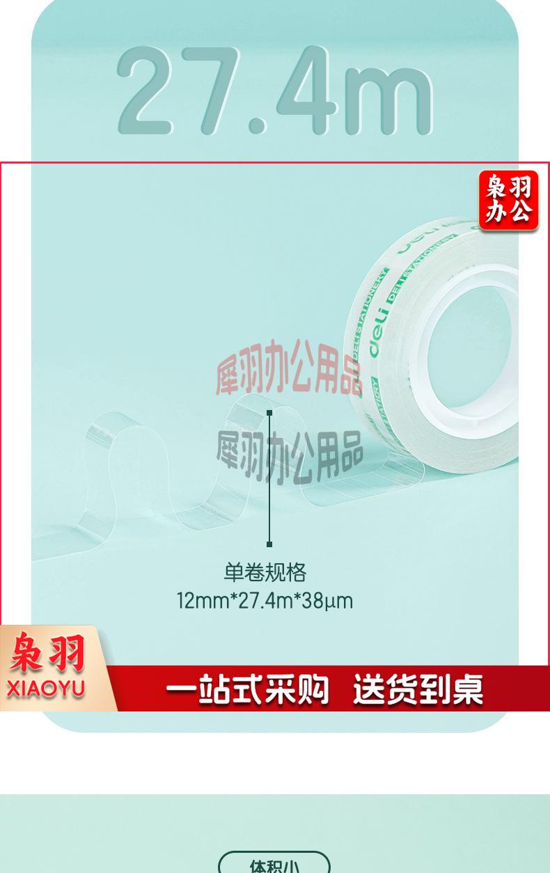 得力(deli)易撕透明高粘文具胶带/小胶带 12mm*30Y(27.3m) 单卷装 创意枕式包装 30009