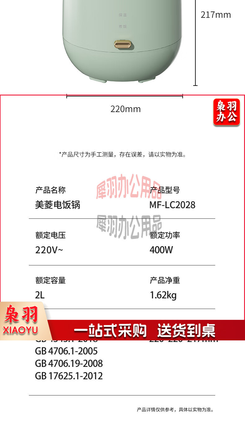 美菱(MeiLing)MF-LC2028电饭锅 精致外观不粘内胆不易糊底 2L