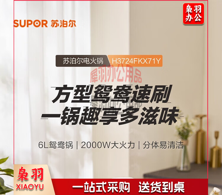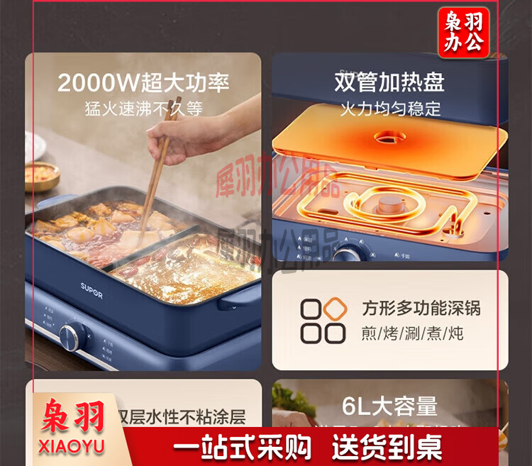 6月上新 苏泊尔(SUPOR)ZMD安心系列 6L鸳鸯电火锅 炖煮涮焗 2000W大火力 3档调节 可分离锅身 不粘电火锅H3724FKX71Y