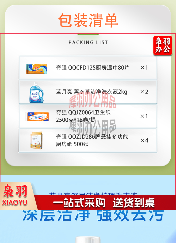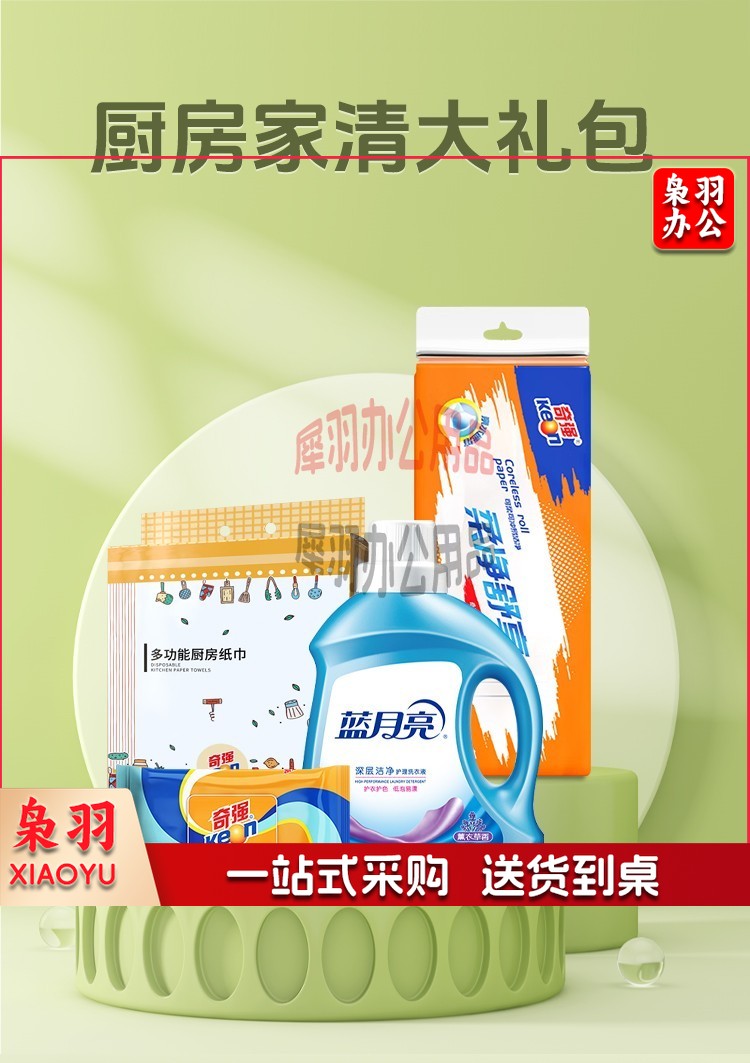 奇强 厨房家清大礼包(蓝月亮洗衣液2kg+奇强卫生纸1提+奇强厨房湿巾1包+奇强厨房纸1包)