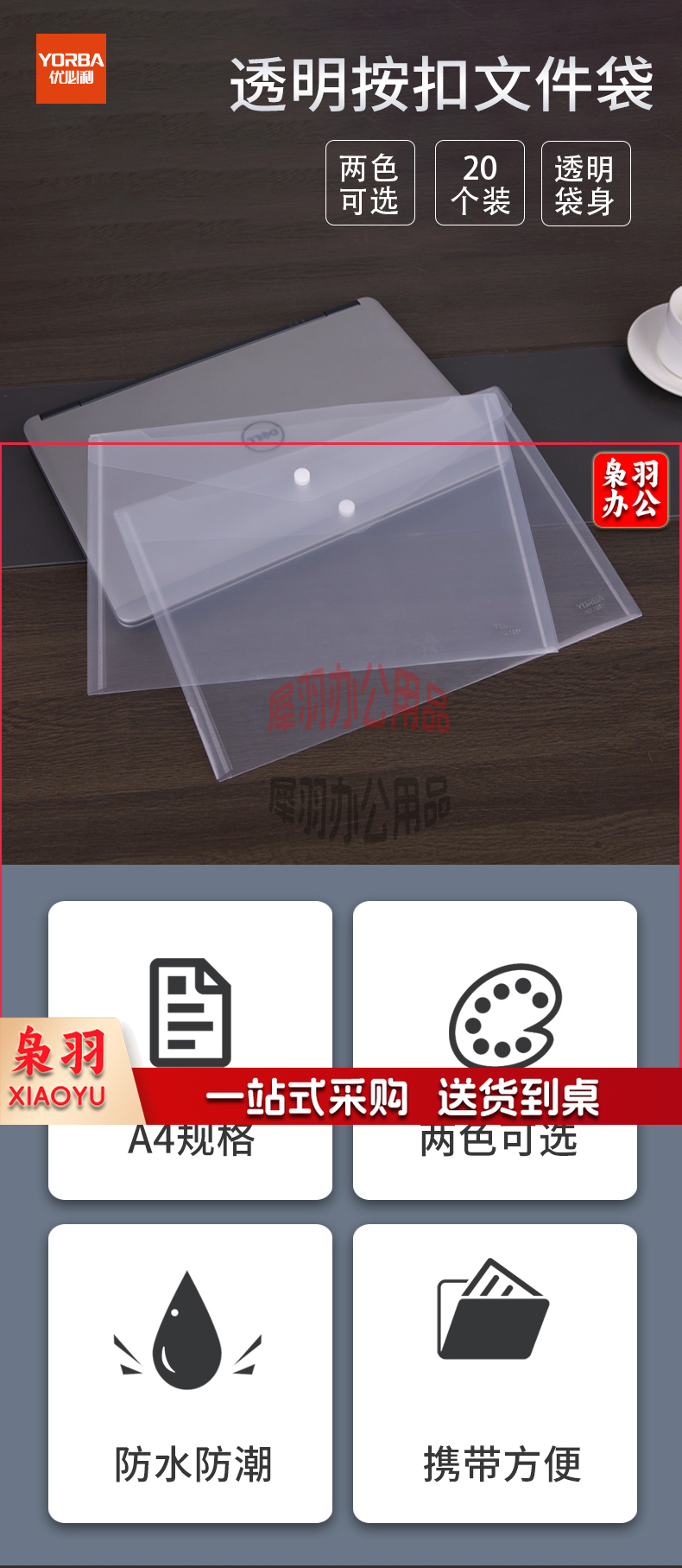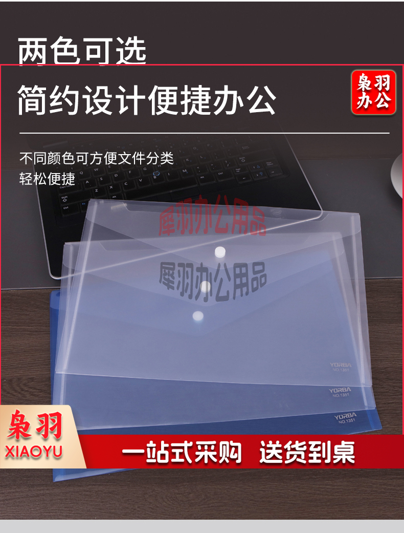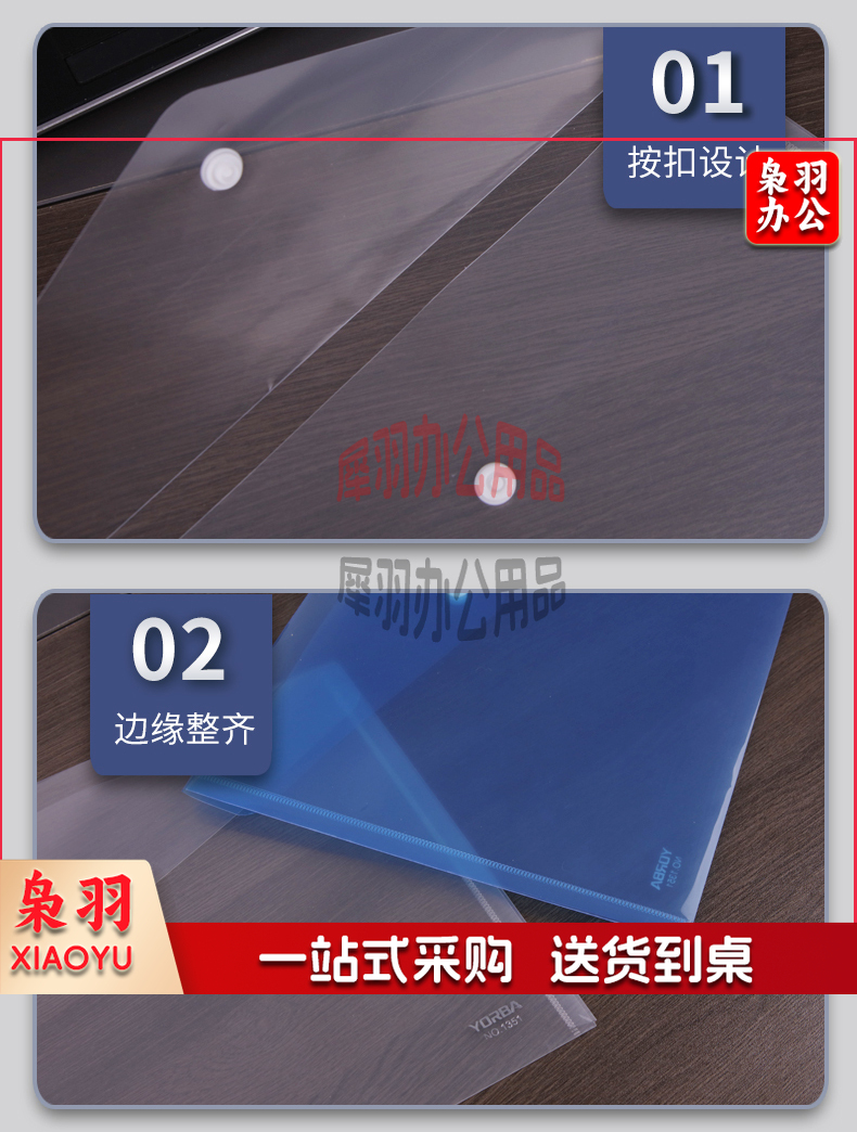 优必利 按扣文件袋 纽扣文件袋 扣袋资料袋 透明袋 扣袋蓝色(10个/包) 1351