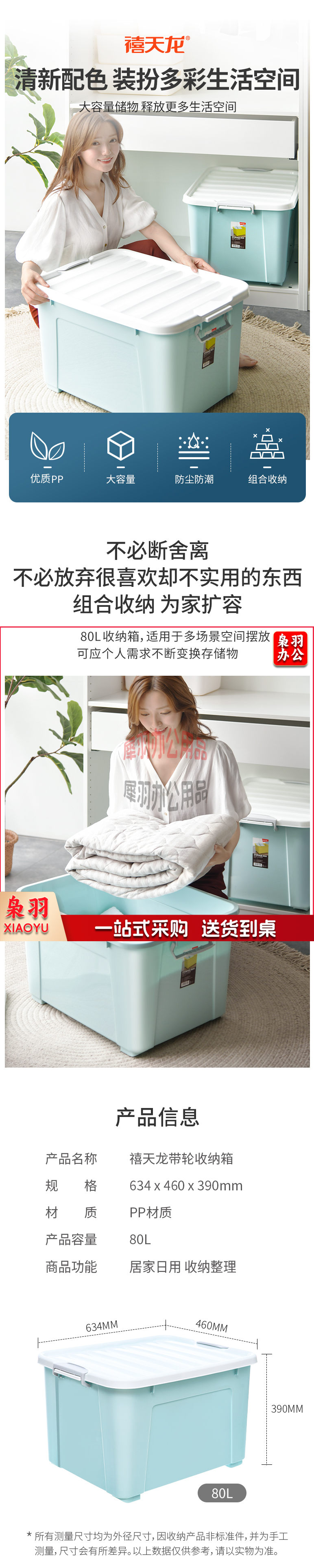 禧天龙(Citylnog) 6155 收纳箱整理箱 带滑轮 80升 634*460*390