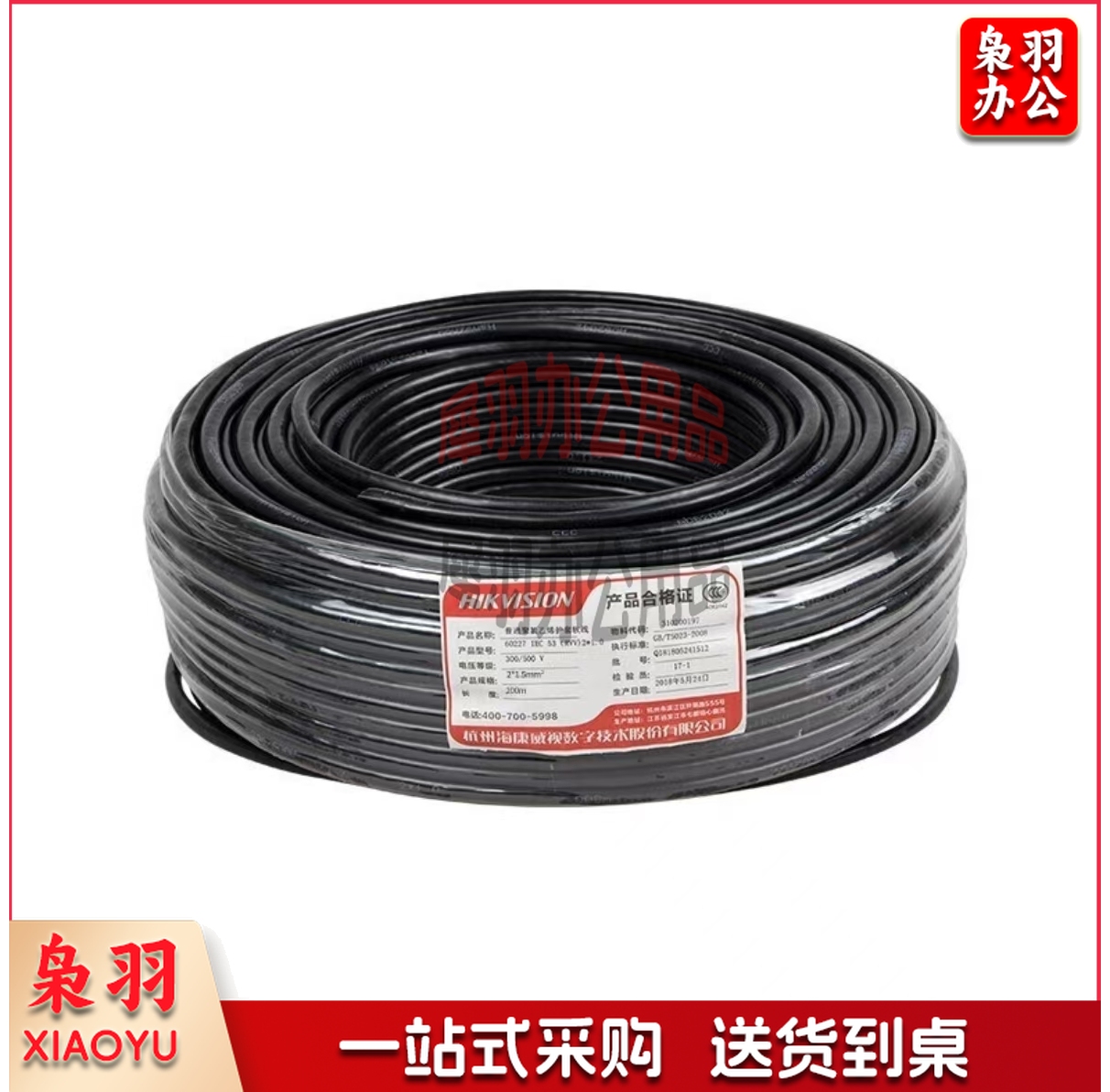 海康威视 监控视频线同轴模拟视频线 综合线BNC接头远距离传输300米500米 RVV2*1.0 电源线 1米