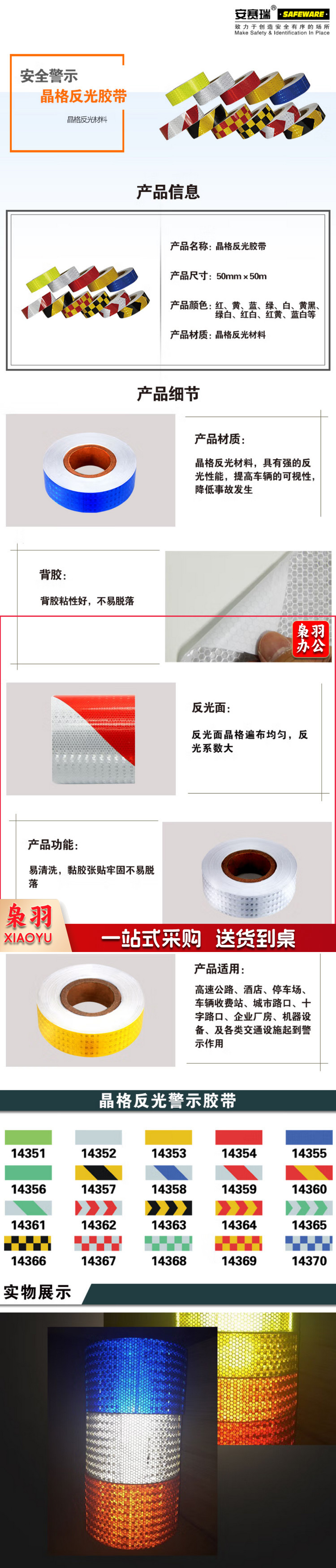 安赛瑞14361晶格反光警示胶带绿白50mm*50m(卷)