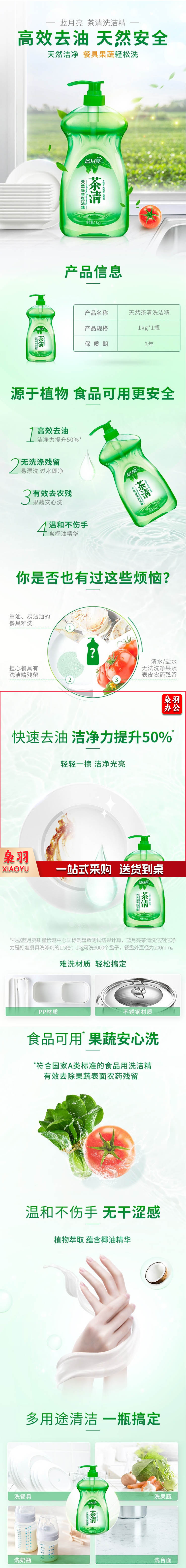 蓝月亮 1kg 茶清洗洁精 洗涤灵 果蔬餐具清洗剂 食品可用 高效去油 计价单位:瓶