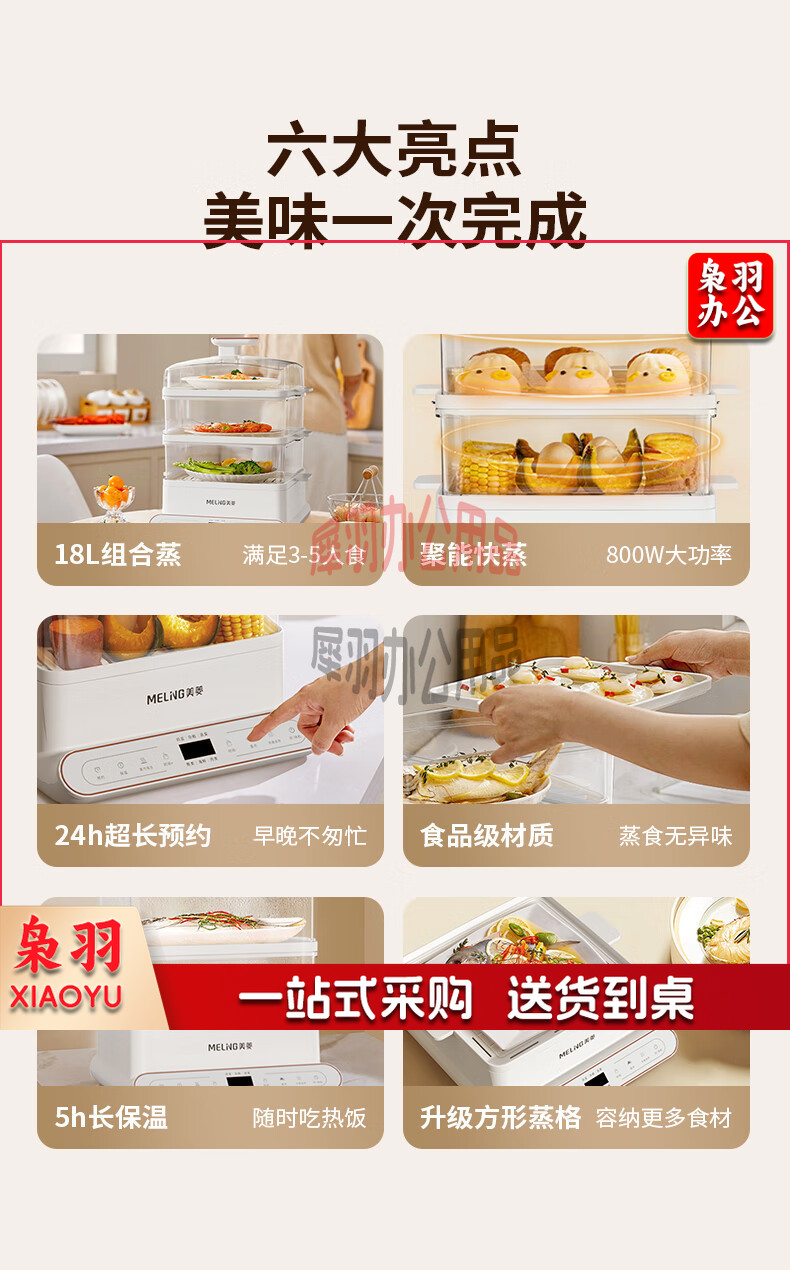 美菱(MeiLing)MT-LC1826多功能电蒸锅 18L三层大容量 预约保温可视化透明机身