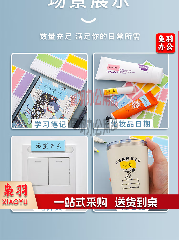 不干胶标签贴纸分类彩色标签贴手写自粘姓名贴防水写名字的贴纸10张/包 小号 3袋起售