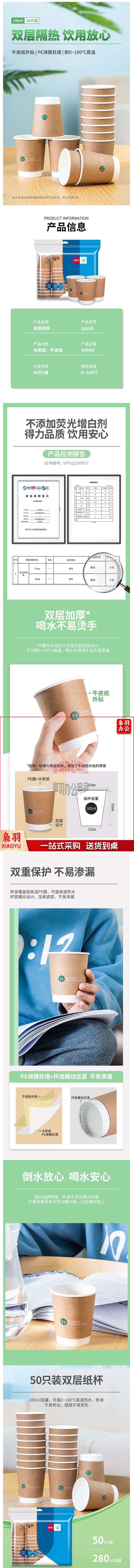 得力 280ml一次性纸杯 双层加厚 50个装 19209(每箱16包)
