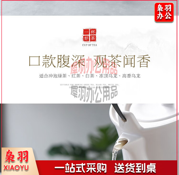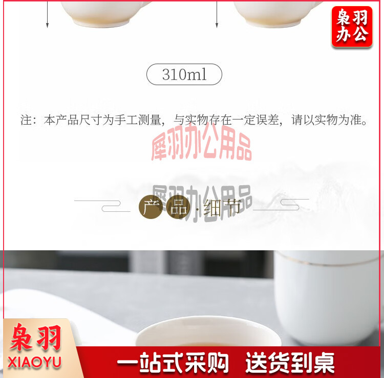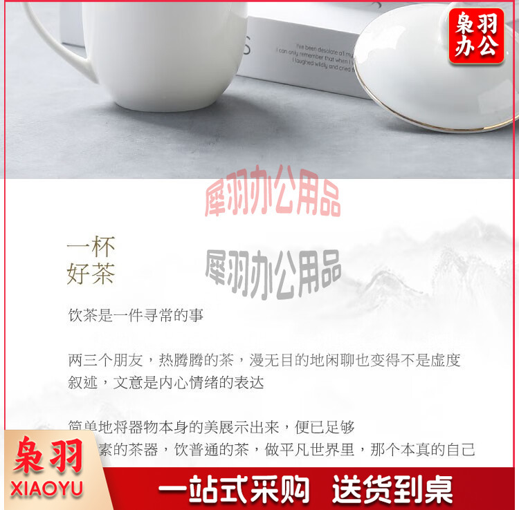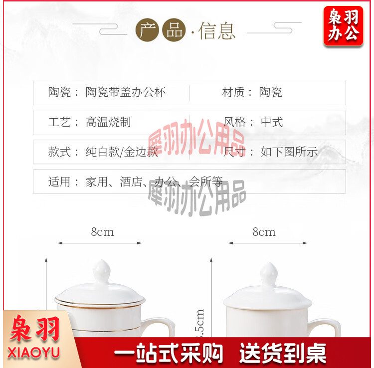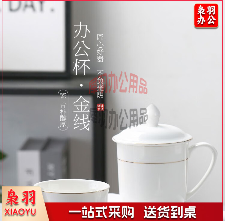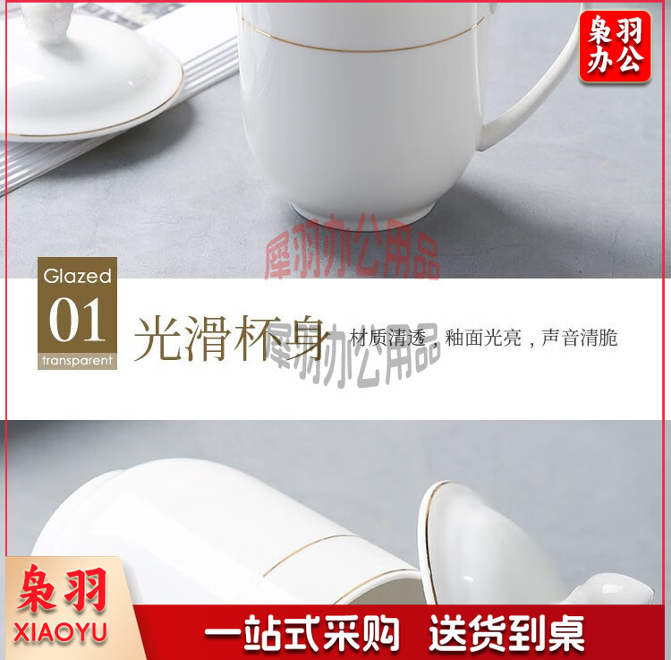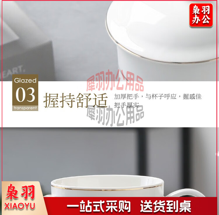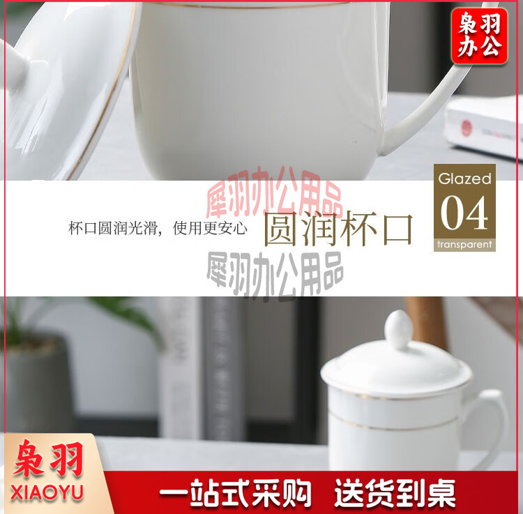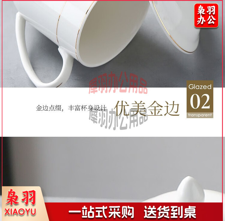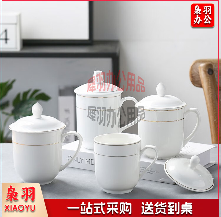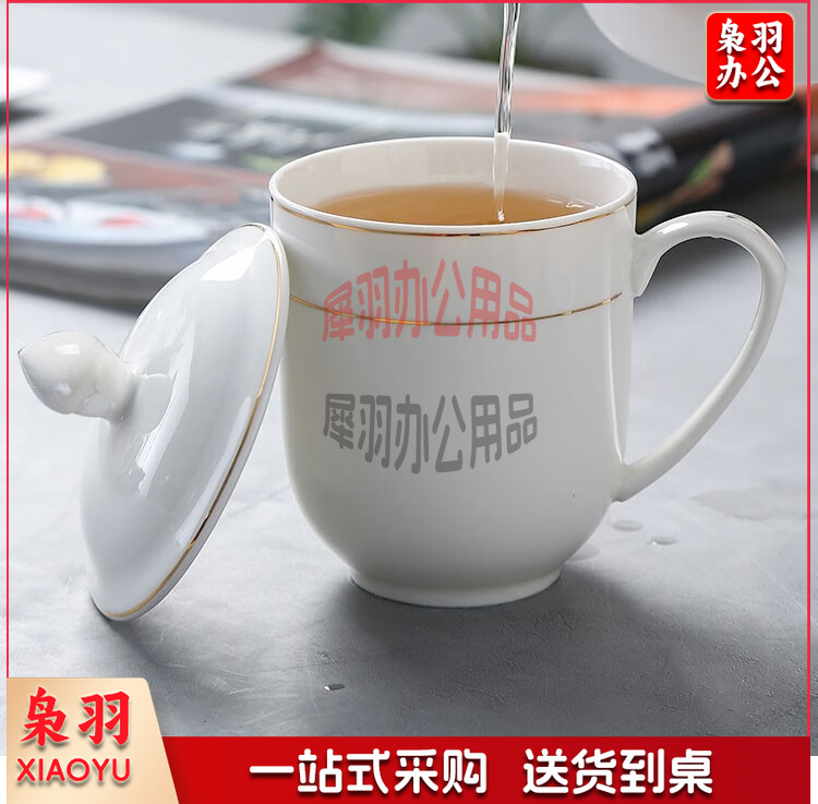妙奕嘉 茶杯陶瓷泡茶杯家用办公室喝茶水杯带盖单人茶杯酒店宾馆会务杯 金边陶瓷带盖办公杯【310ml】