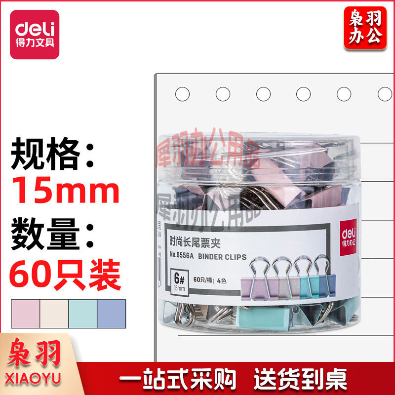 得力8556A时尚长尾票夹(混色)(60只/桶)