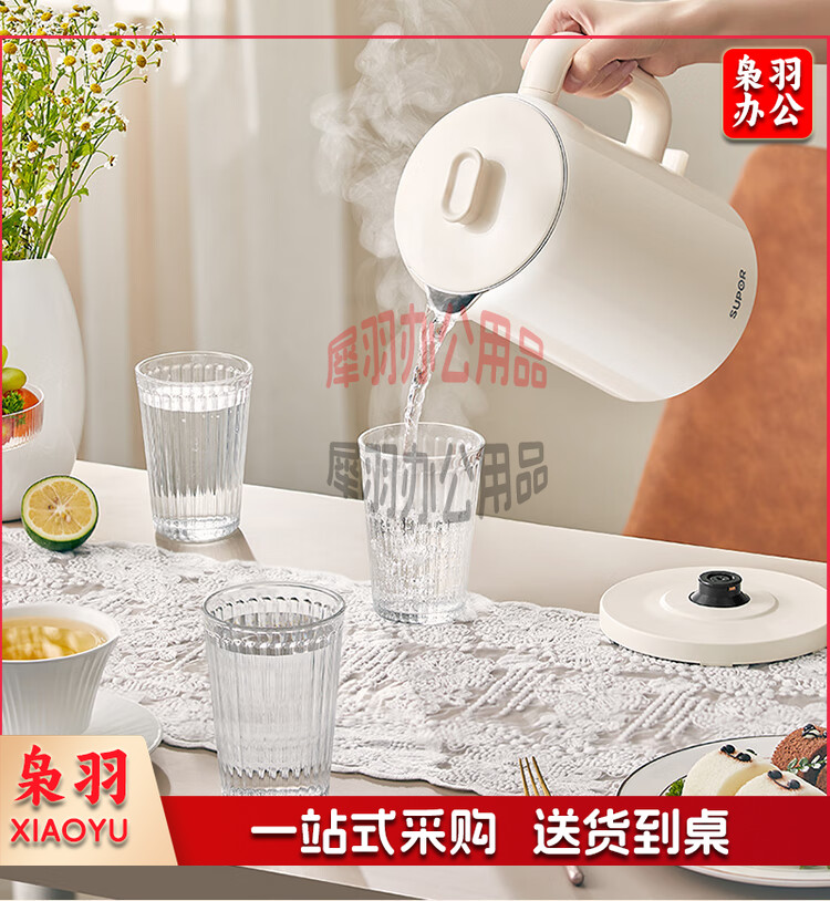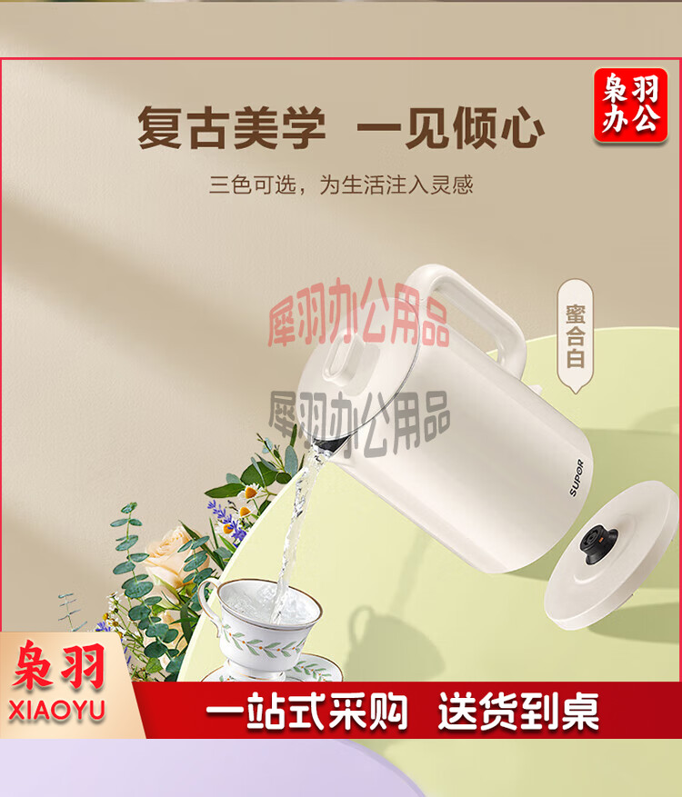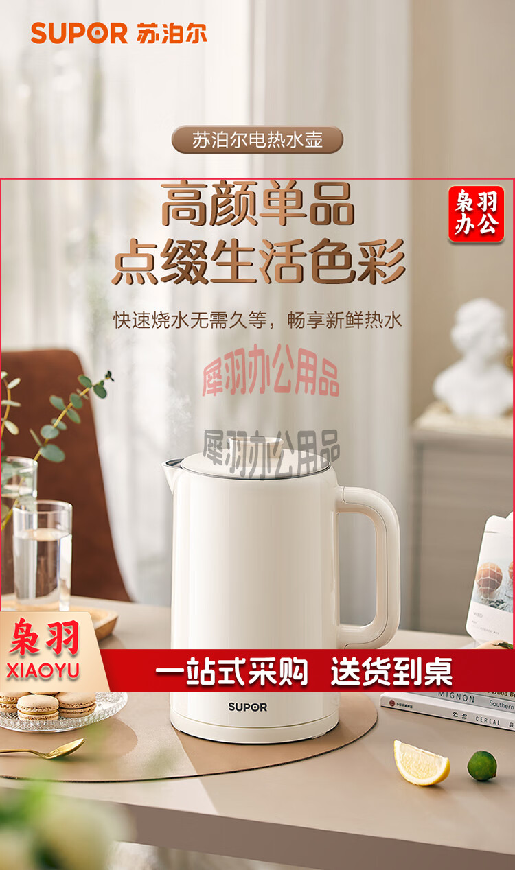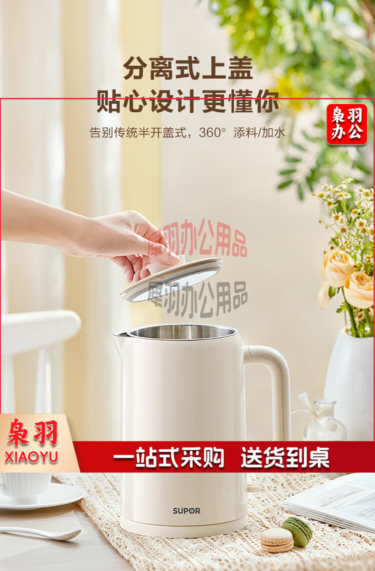 苏泊尔(SUPOR)烧水壶 电热水壶双层防烫开水壶家用大容量电水壶全钢无缝内胆开水壶上盖可拆SW-15T109A(米白)