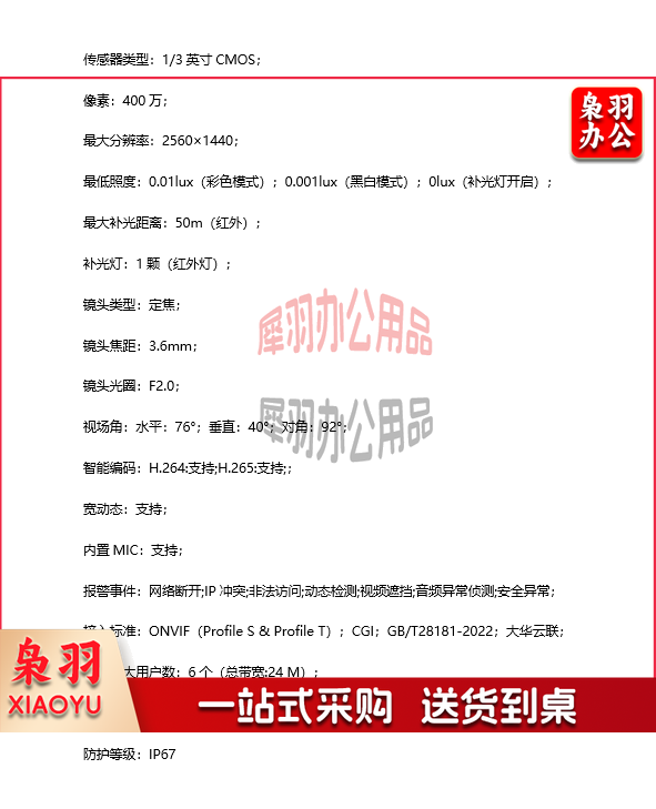 大华 400万红外定焦枪型网络摄像机DH-IPC-HFW3430M-A-I1