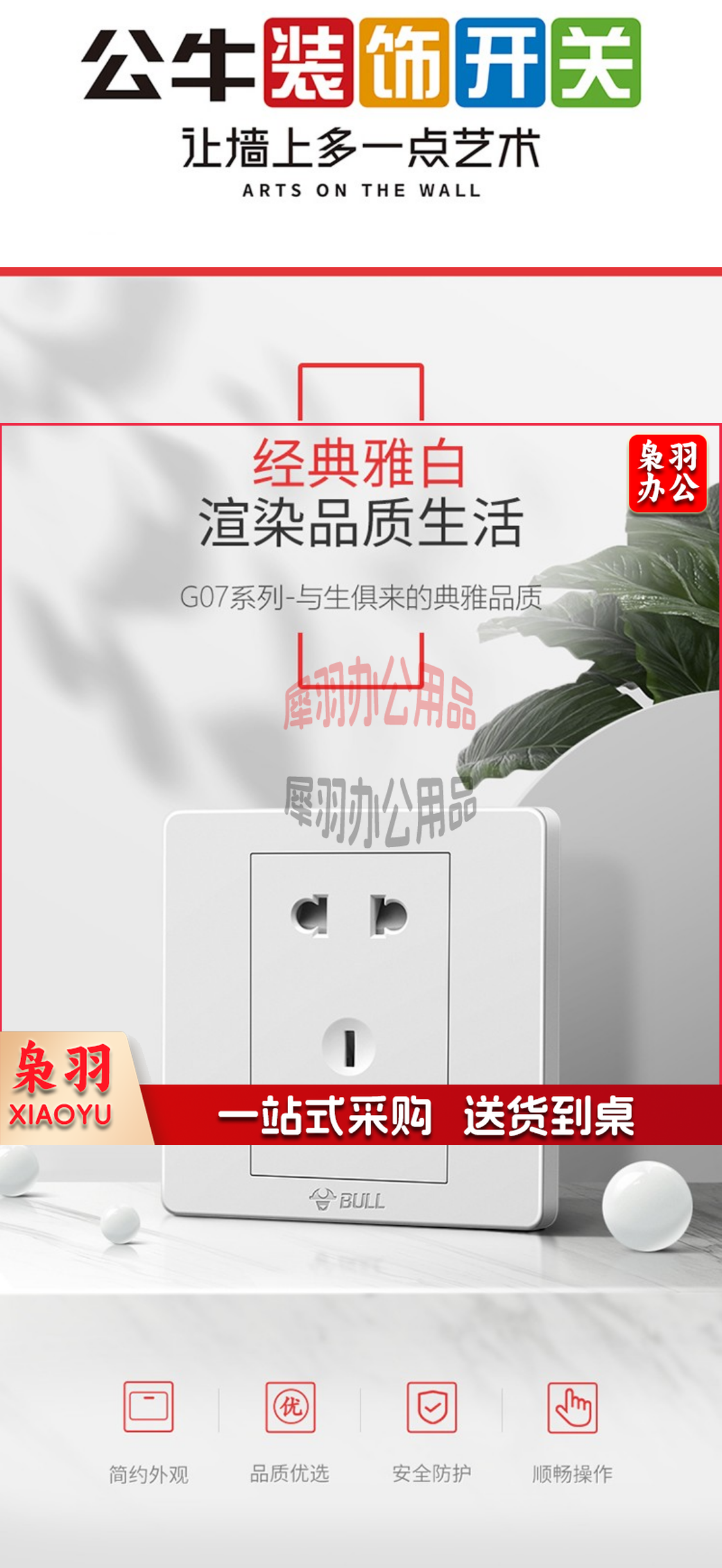 公牛(BULL)开关插座面板 G07象牙白 五孔10A