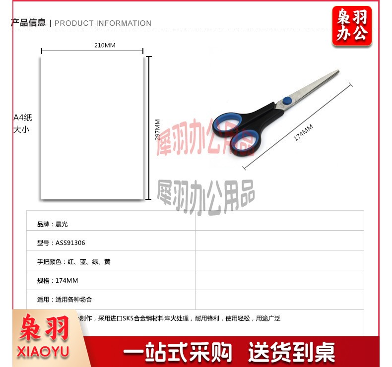 晨光(M&G) 剪刀 手工剪刀/办公剪刀/剪纸刀/学生裁剪剪刀 颜色随机 多款可选 一把 办公剪刀(210mm) 91468