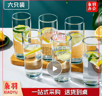 天喜 (TIANXI)玻璃杯 水杯透明牛奶杯果汁杯早餐杯口杯酒店家用6只装 215ml*6M&C29677
