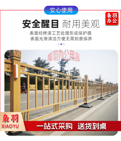 黄金道路护栏金黄色莲花帽马路隔离防撞栏杆户外城市小区公路交通围栏栅栏 80cm高