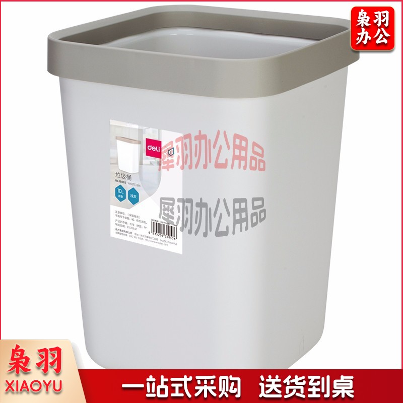 得力18820垃圾桶(浅灰)10l方形敞口 1只 厨房办公室家用大号创意垃圾箱无盖塑料方形带压圈垃圾桶
