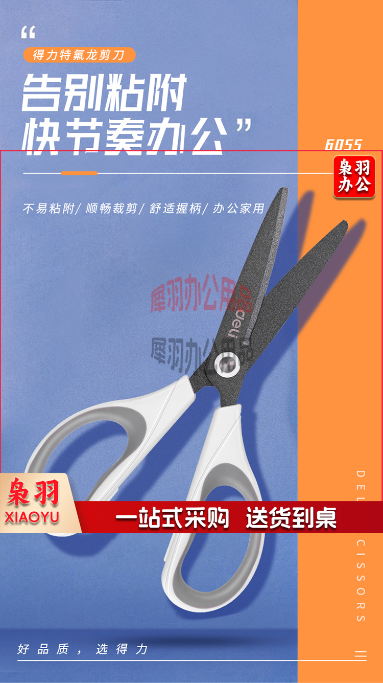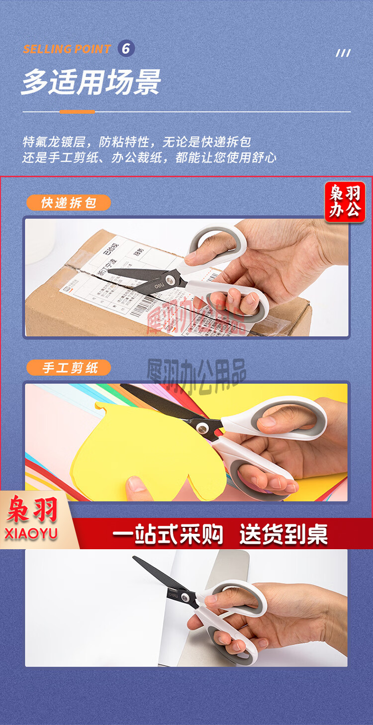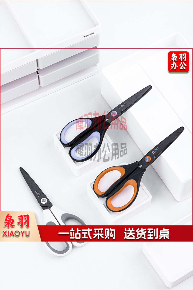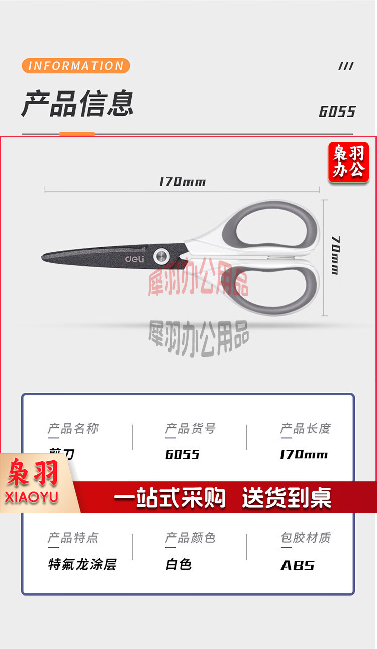 得力(deli)170mm特氟龙材质防粘不锈钢剪刀 白色6055