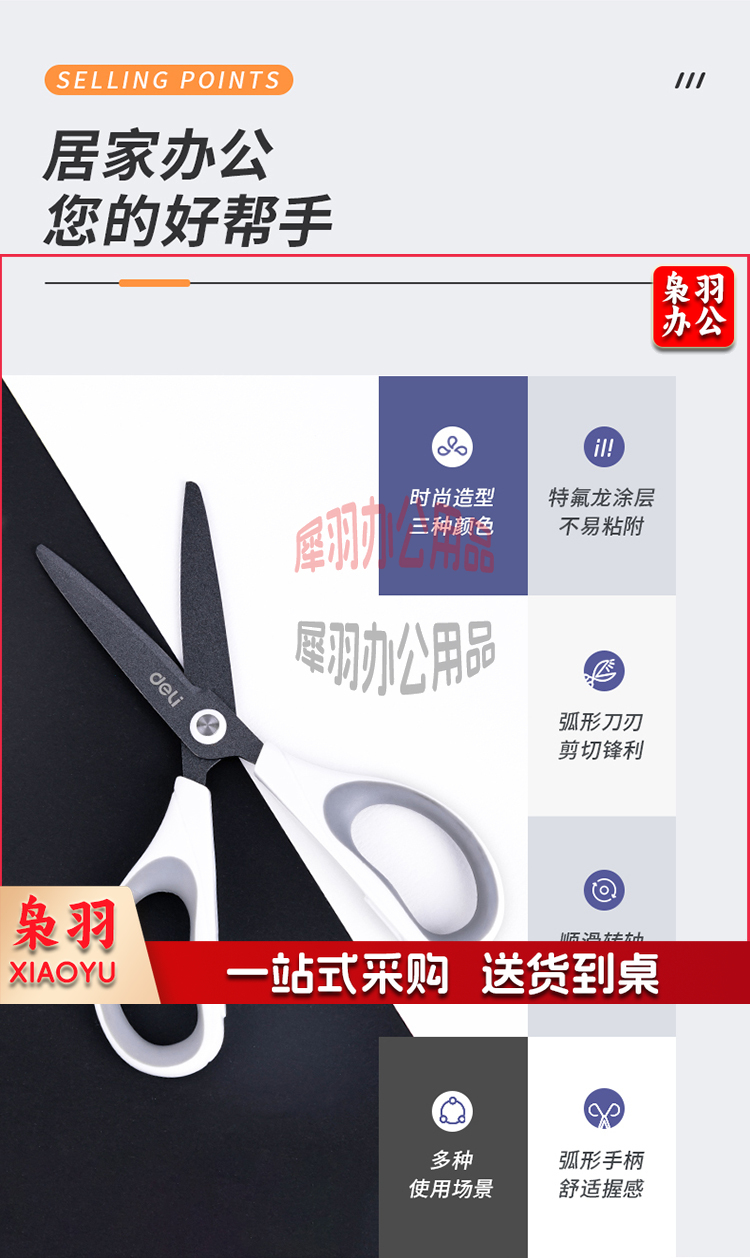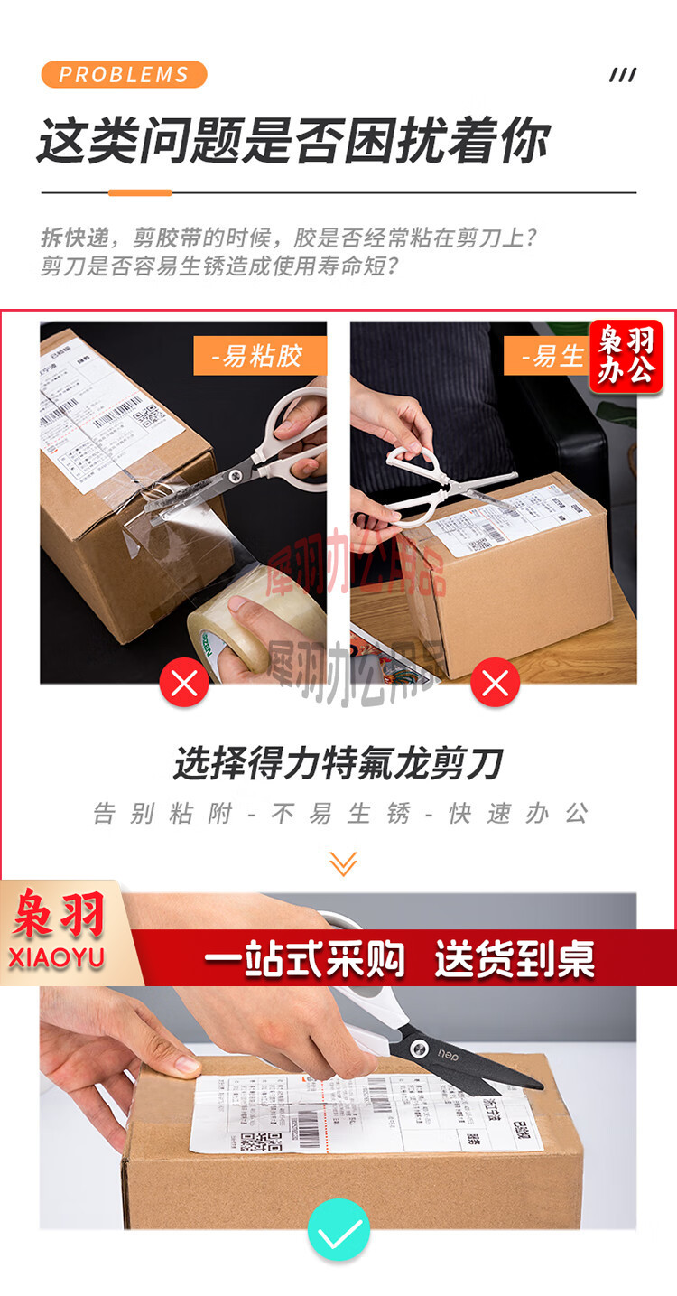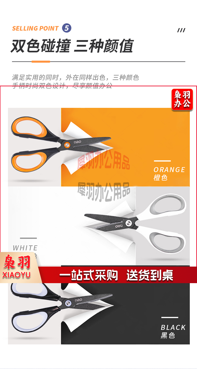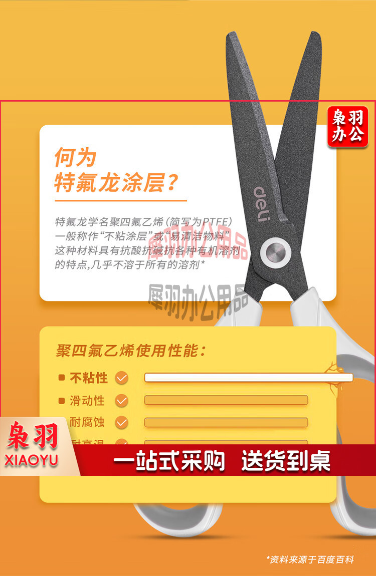 得力(deli)170mm特氟龙材质防粘不锈钢剪刀 白色6055