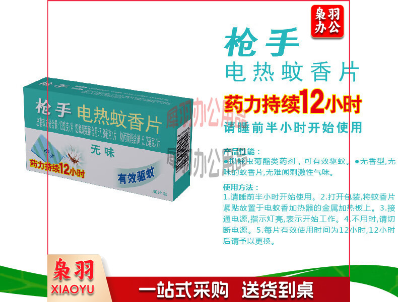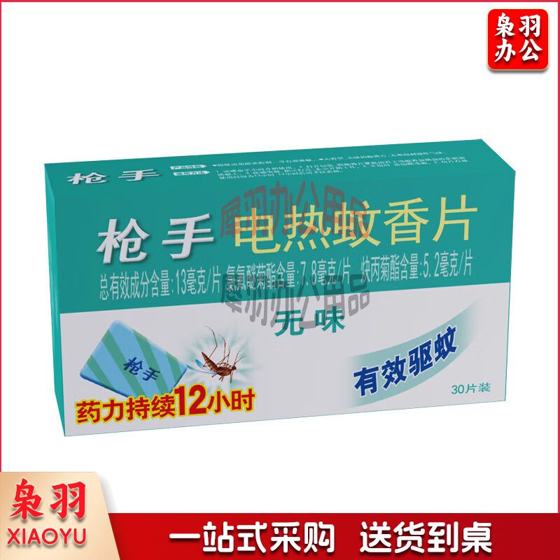枪手驱蚊杀蚊 家用 电热蚊香片30片(无味) 单位:盒
