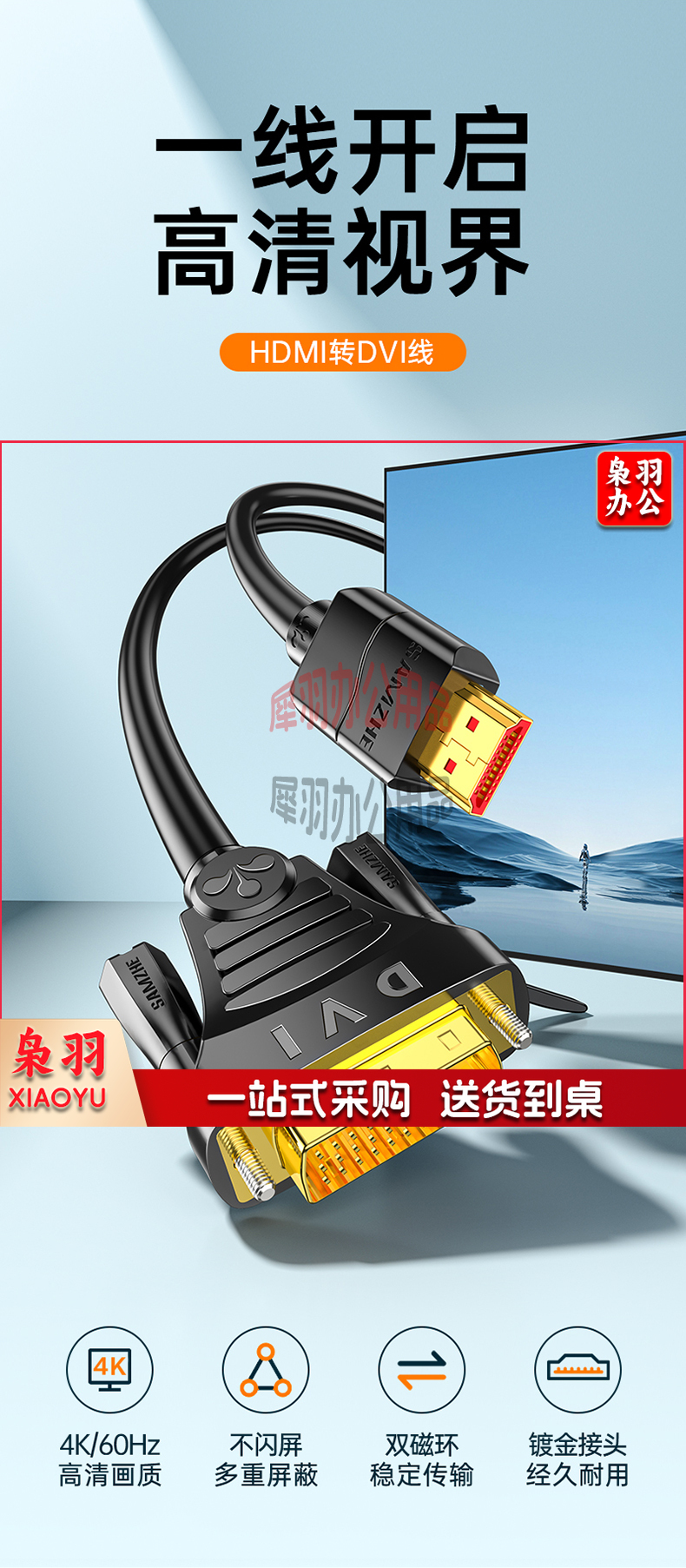 山泽(SAMZHE)HDMI转DVI连接线 DVI转HDMI转接头高清双向互转笔记本电脑投影仪显示器视频转换线 10米 DH-8200默认规格