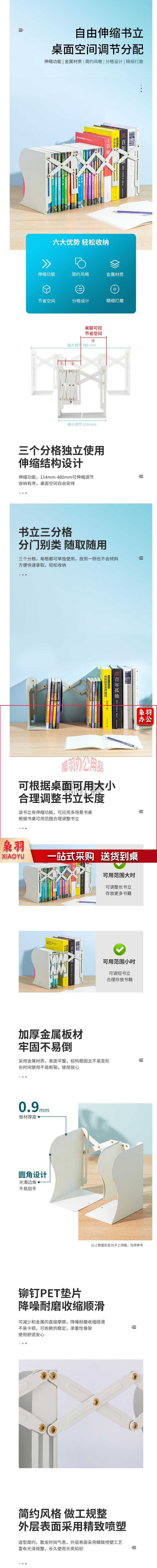 得力78631可伸缩书立书夹 靠书本收纳书档板 最大伸缩480mm