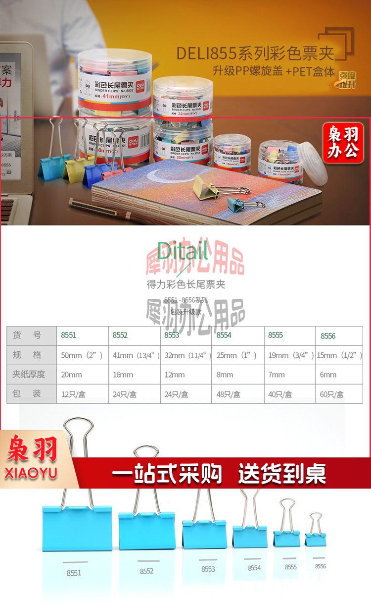 得力No.8552彩色金属燕尾夹2号 41mm 24只/筒