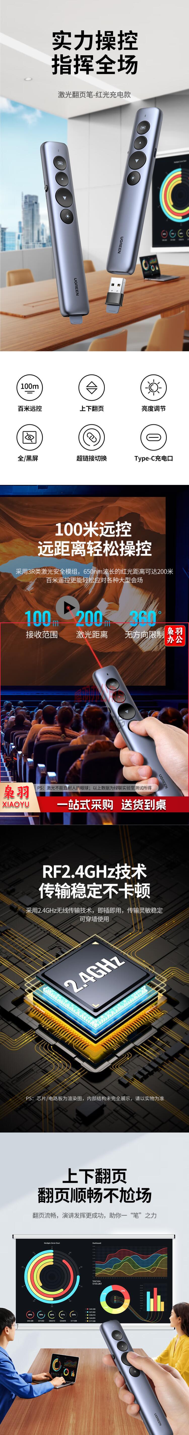 绿联 15153 翻页笔 激光笔可充电 PPT投影笔教师教鞭电子演讲笔 多媒体幻灯片无线演示课件笔