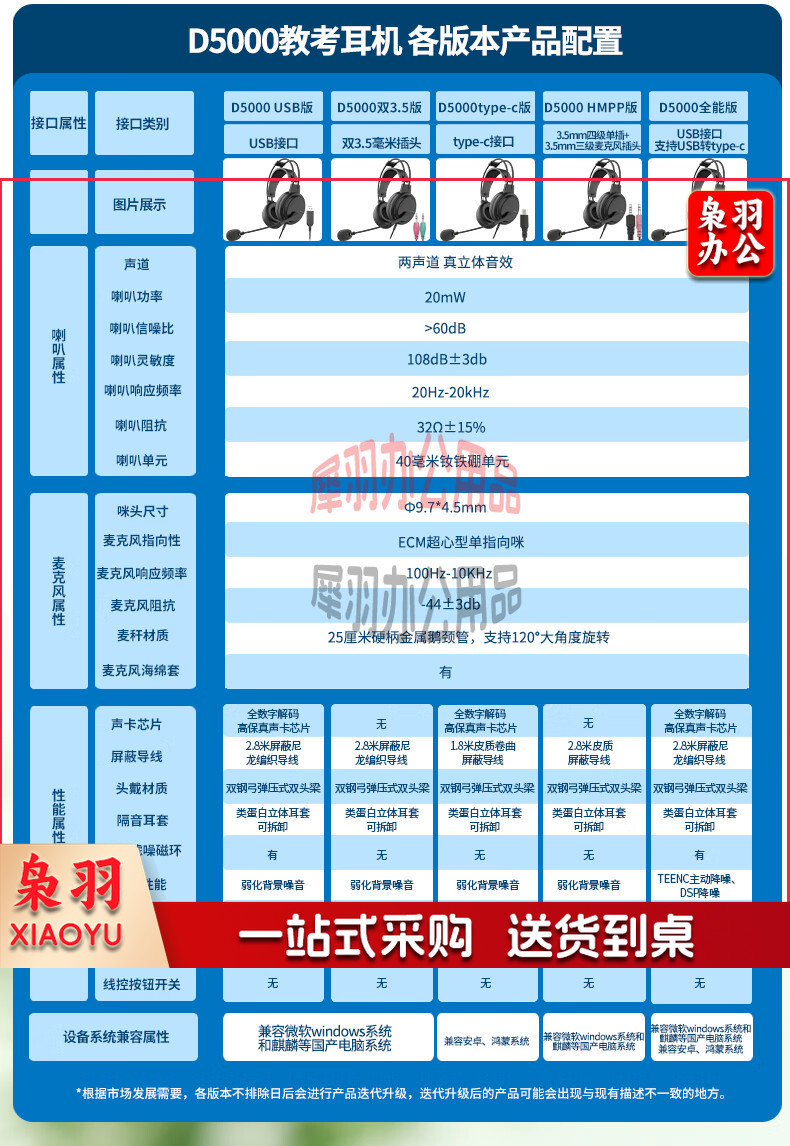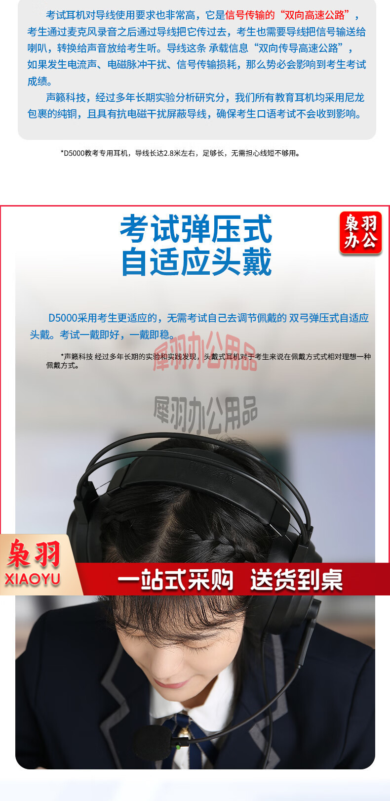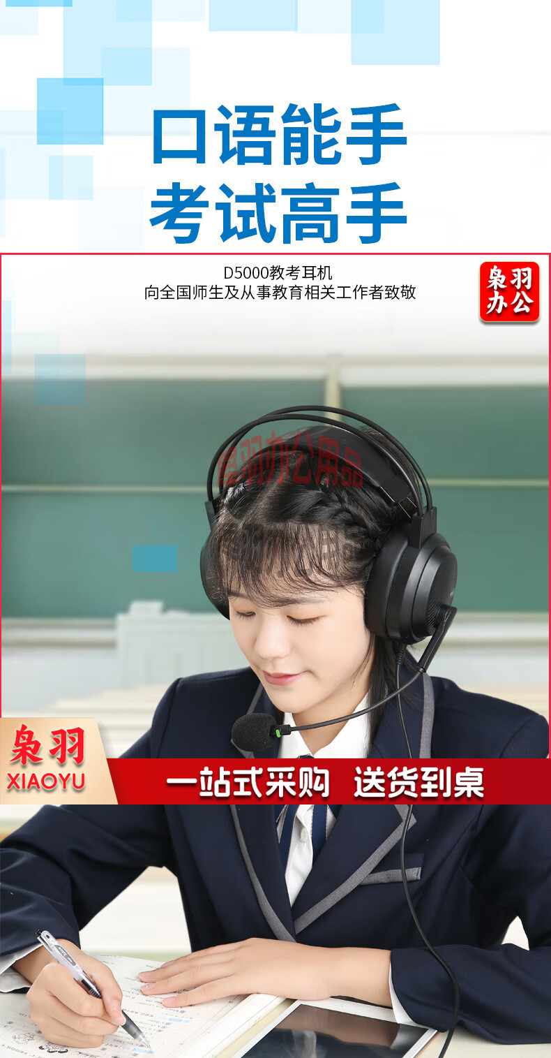 电音D5000英语听说考试专用耳机头戴式有线带麦克风训练初中高中人机对话语录音跟读耳麦带话筒USB接口